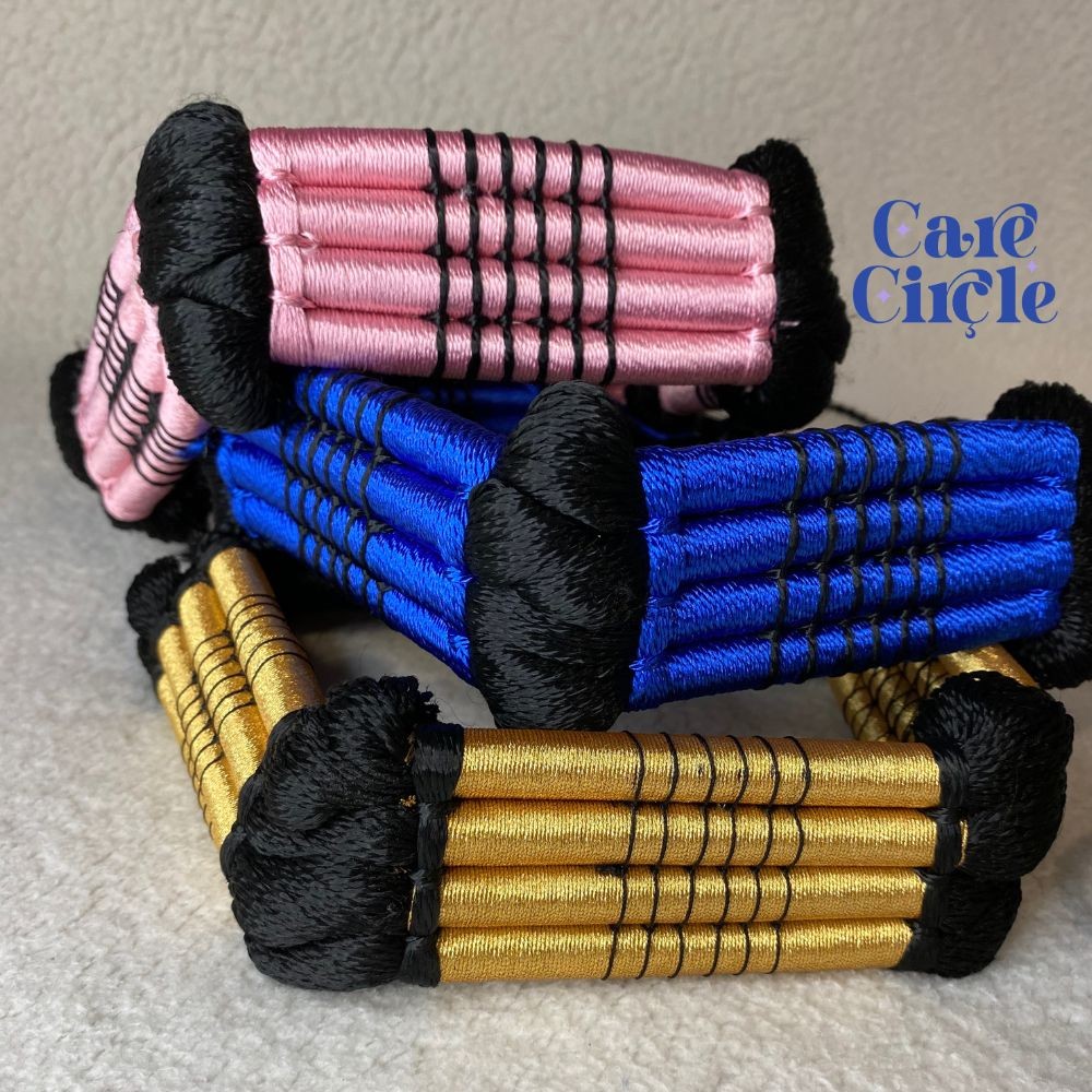 احتفلي بيوم التأسيس مع أحبتك واطلبي بكج التأسيس المميز يتكون هذا البكج الرائع من ٣ عقال مقصب ملكي بألوان رائعة: ذهبي، أزرق، ووردي، ليكون الخيار المثالي لمناسباتكم الخاصة.